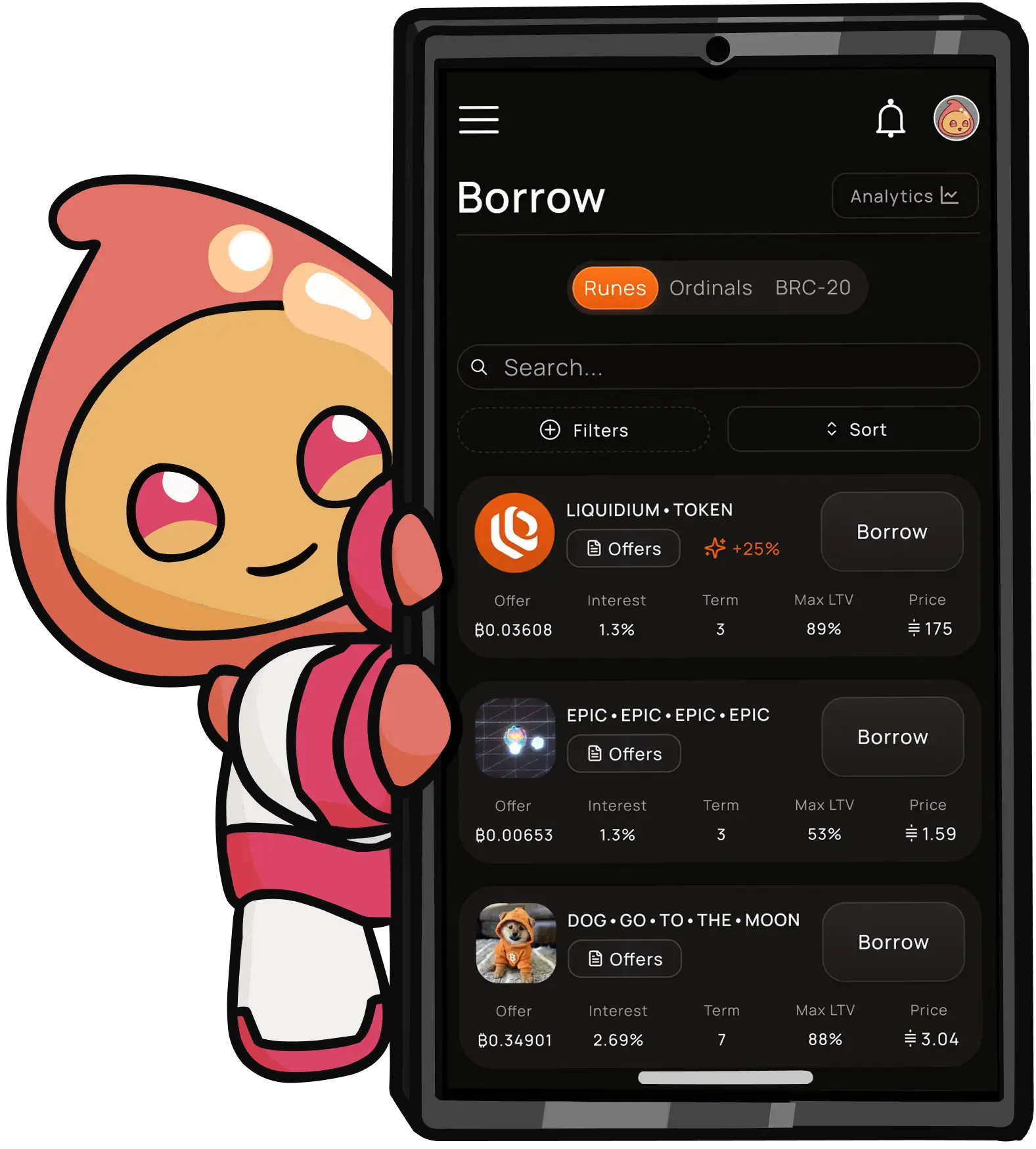 LiquidiumWTF is the leading decentralized P2P Bitcoin lending protocol where users can borrow BTC against Ordinals and Runes and lend BTC to earn up to 380% APY.